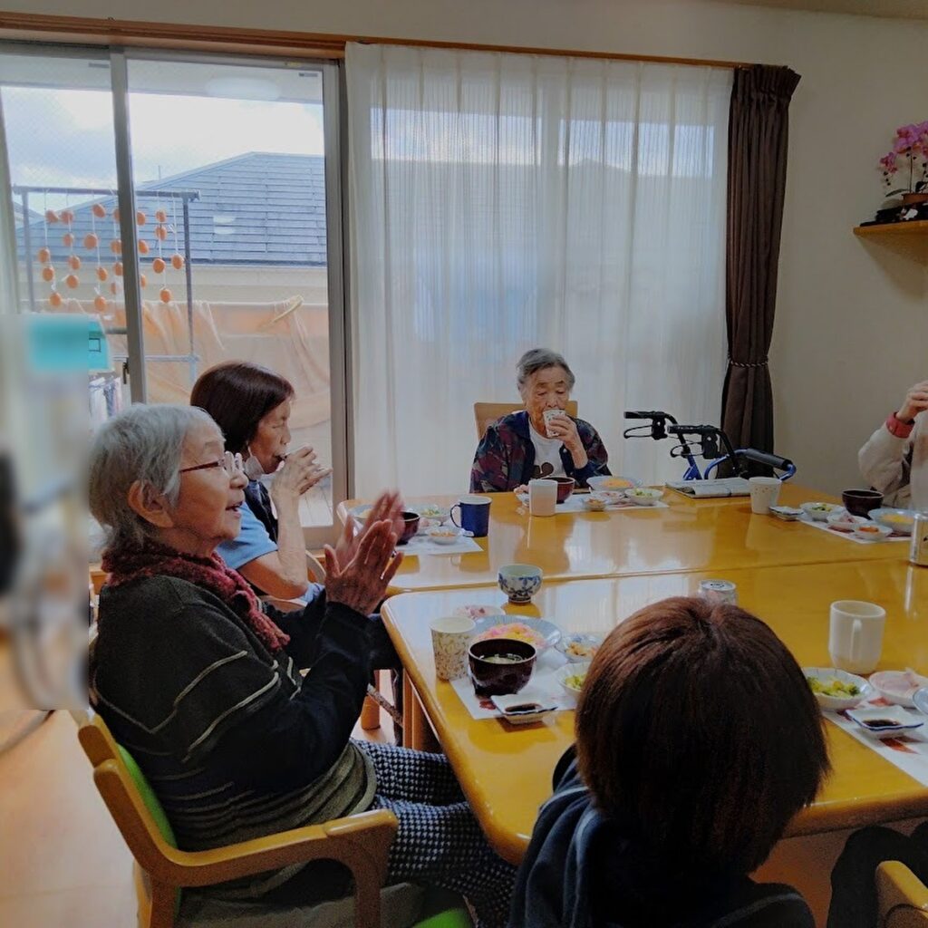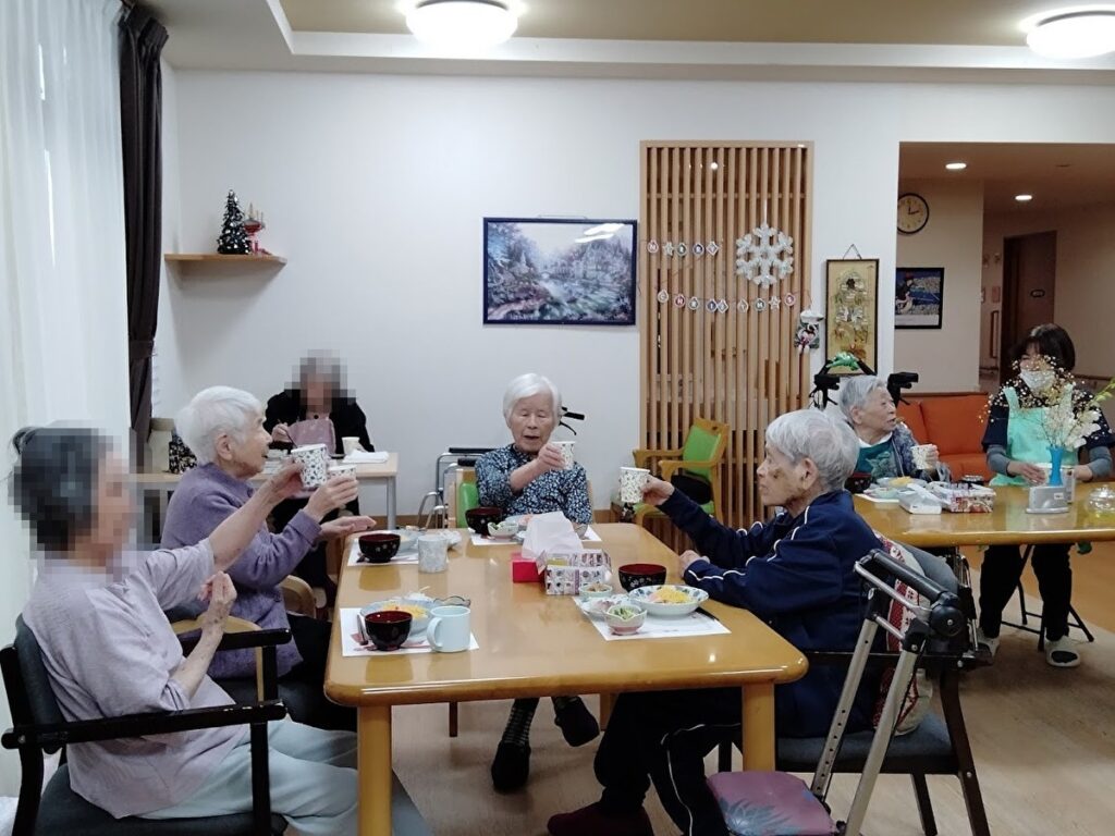 今年も残すところ10日を切りましたね。今年もささやかながら、忘年会を催しました。 利用者の方のご発声で【2025忘年会】始まりました~(^^)/